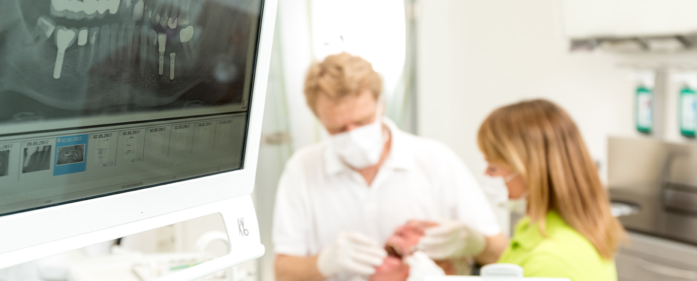 Ob nur ein einzelner Zahn oder eine ganze Zahnreihe ersetzt werden muss: Zunächst beginnen wir mit einer gründlichen Anamnese und Planung. Wir setzen dabei auf eine computergesteuerte Diagnose und DVT-Aufnahmen. So können wir mittels modernster 3D-Diagnosen das Implantat besonders gut planen und das Endergebnis bereits im Vorfeld begutachten.